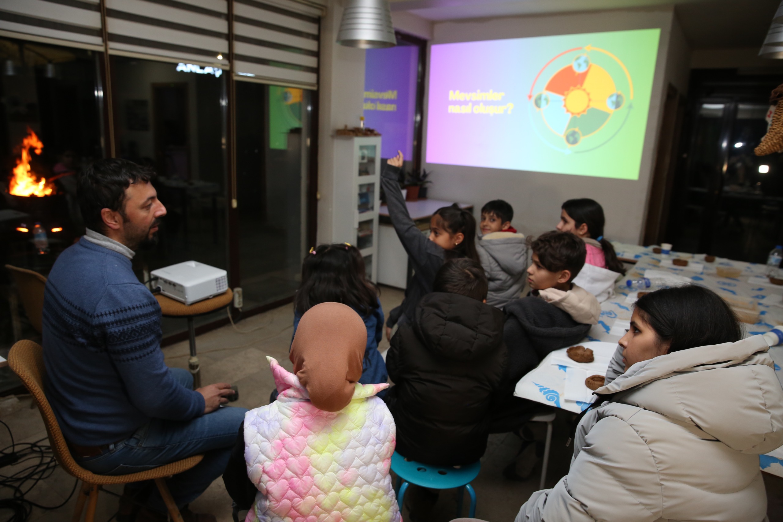 etkinliğinde, 9-14 yaş arasındaki bilim meraklısı çocuklar gökyüzü