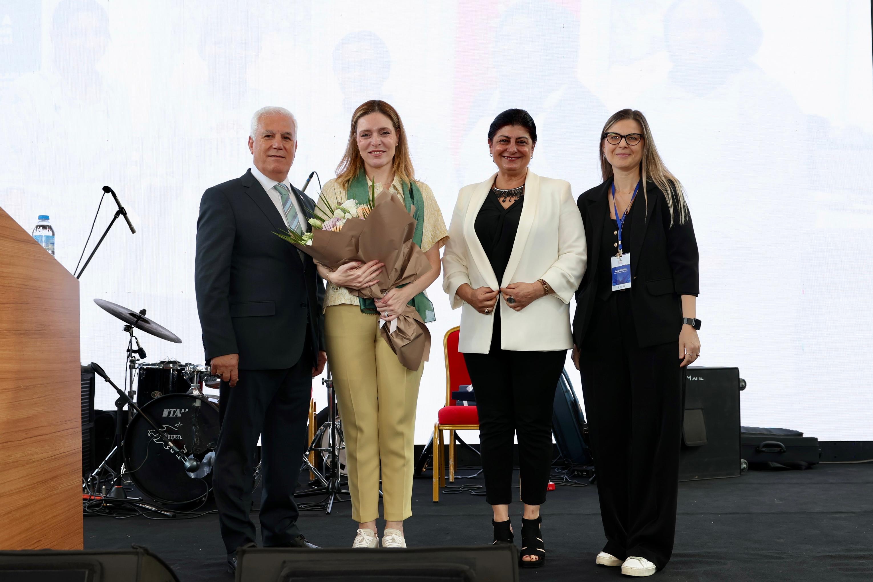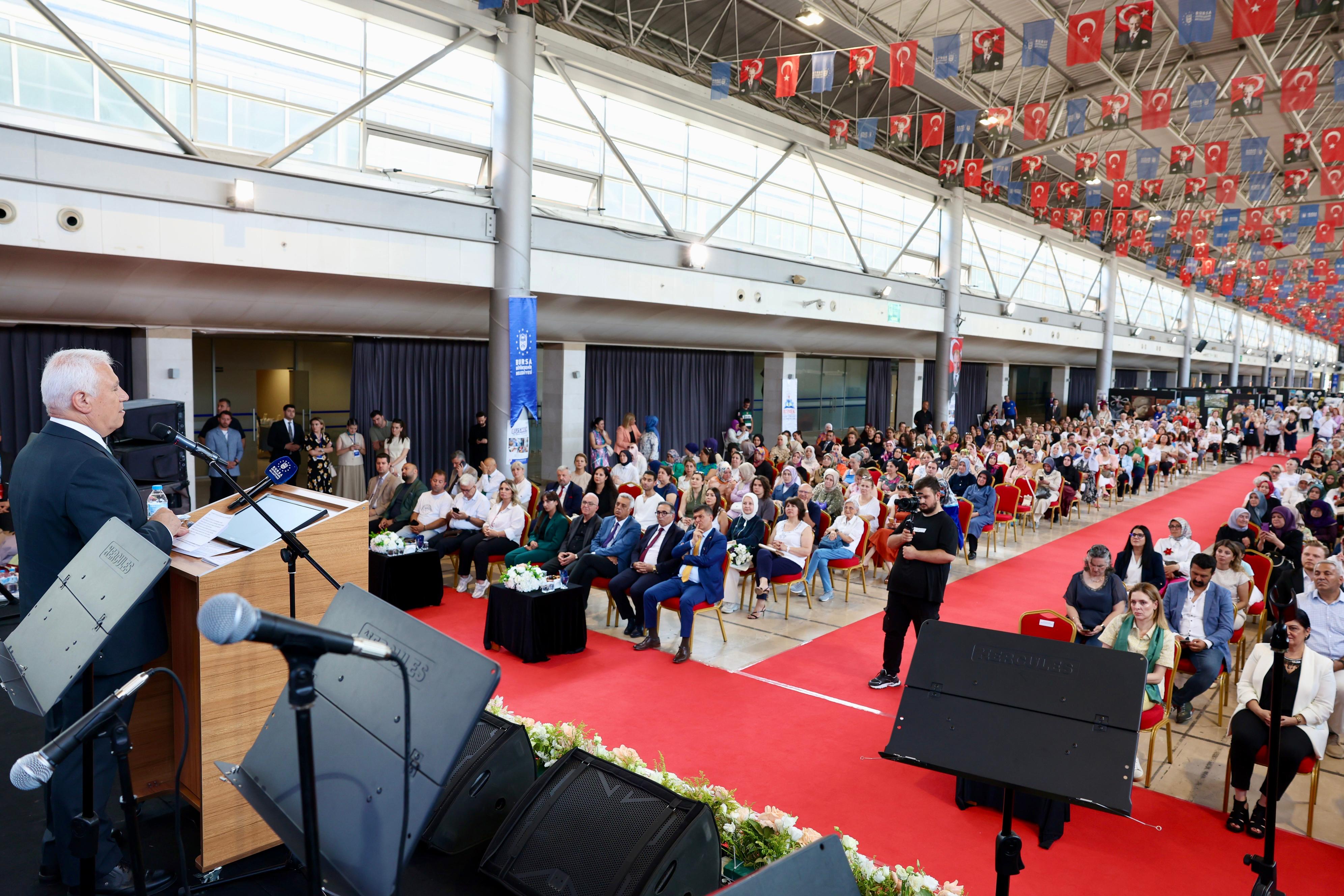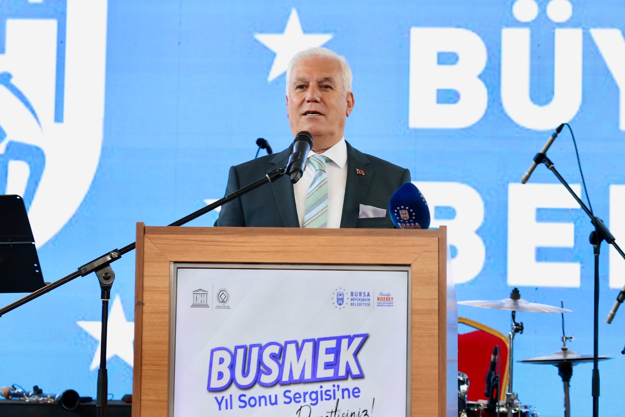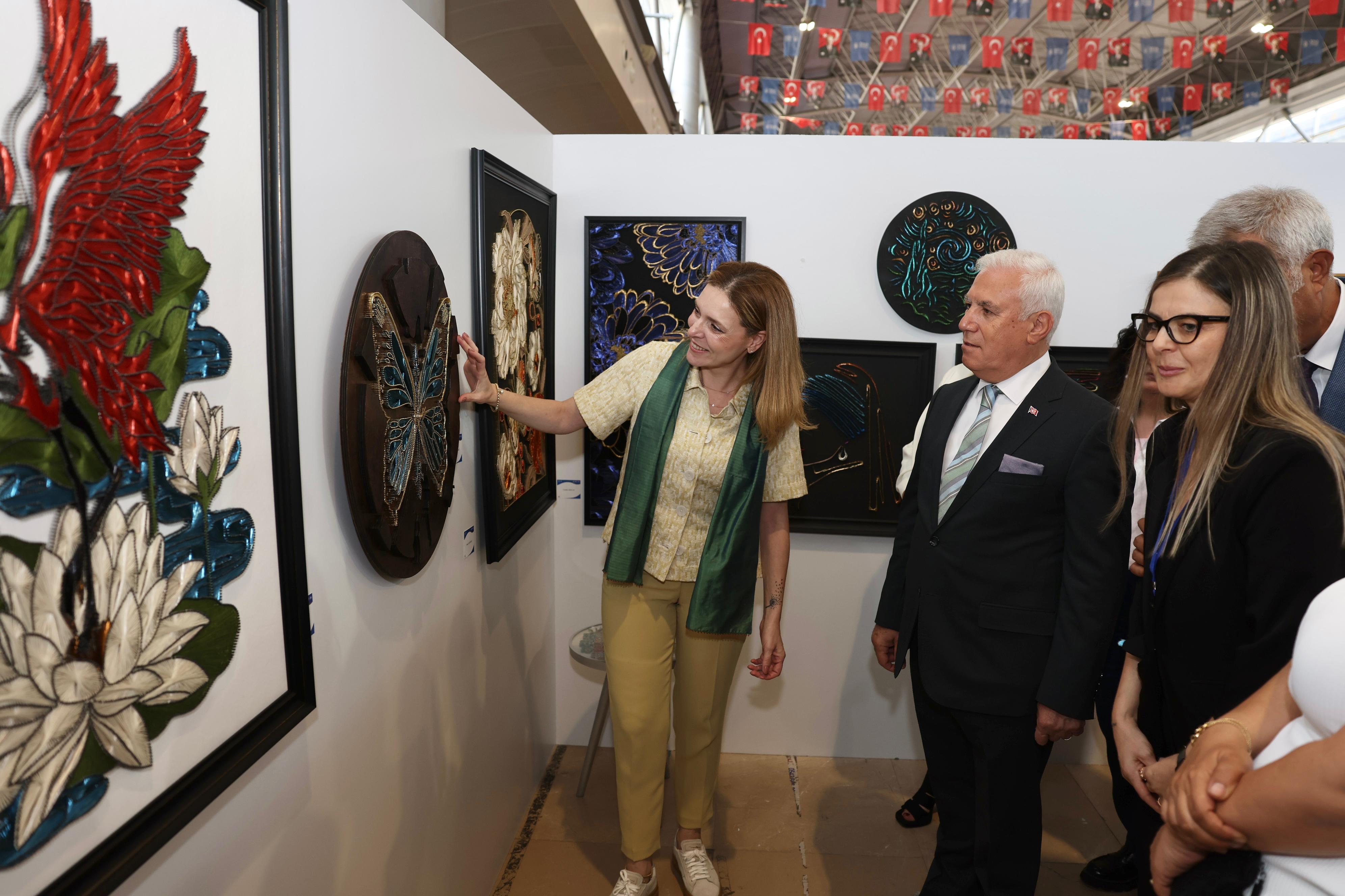 Sergilenen ürünlerin her birinin ayrı bir hikaye, ayrı bir anı oluşturduğuna değinen Başkan Bozbey, ‘’Filografiden ebruya, resimden çini ve seramiğe, cam süslemeden giyim teknolojilerine, iğne oyasından makromeye kadar uzanan bu geniş yelpaze, sadece estetik bir üretim değil, aynı zamanda bir yetenek seferberliğidir. Bu seferberliğin en güçlü ayağını da kadınlar oluşturmaktadır. Kadın emeğini görünür kılan, onları üretime, istihdama ve sosyal yaşama daha fazla dahil eden bir adımdır. Bu bizim için ayrı bir önem taşımaktadır. BUSMEK, tam bu anlayışla özellikle kadınların ekonomik bağımsızlıklarının kazanmaları konusunda duyarlılıklarını ortaya koymakta ve üretkenliklerini değerlendirmeleri için önemli bir kapı aralamaktadır. Sizlerin önerileriyle bu kurslar hem yazın devam edecek hem de çeşitliliği artacak’’ ifadelerini kullandı.