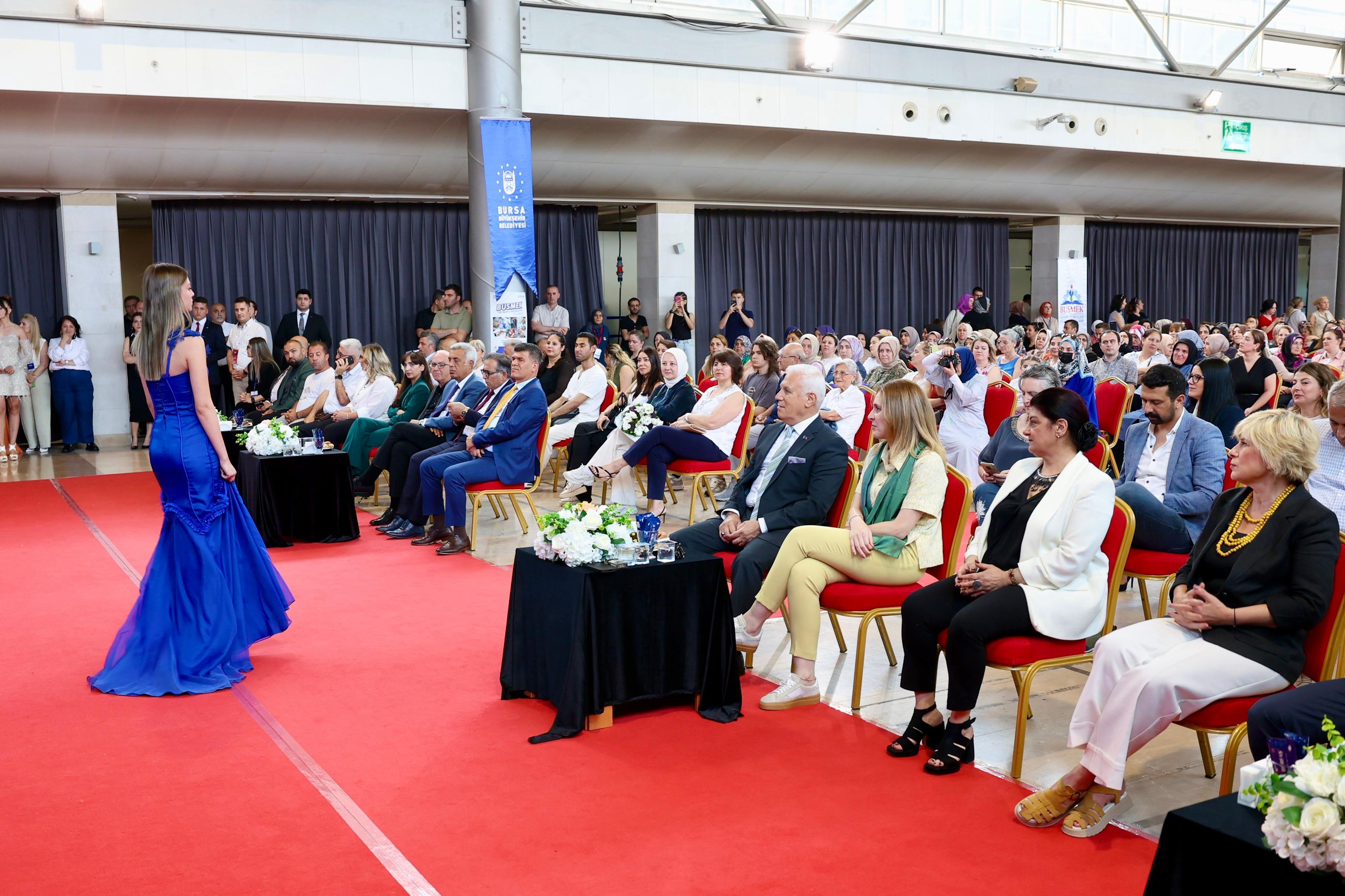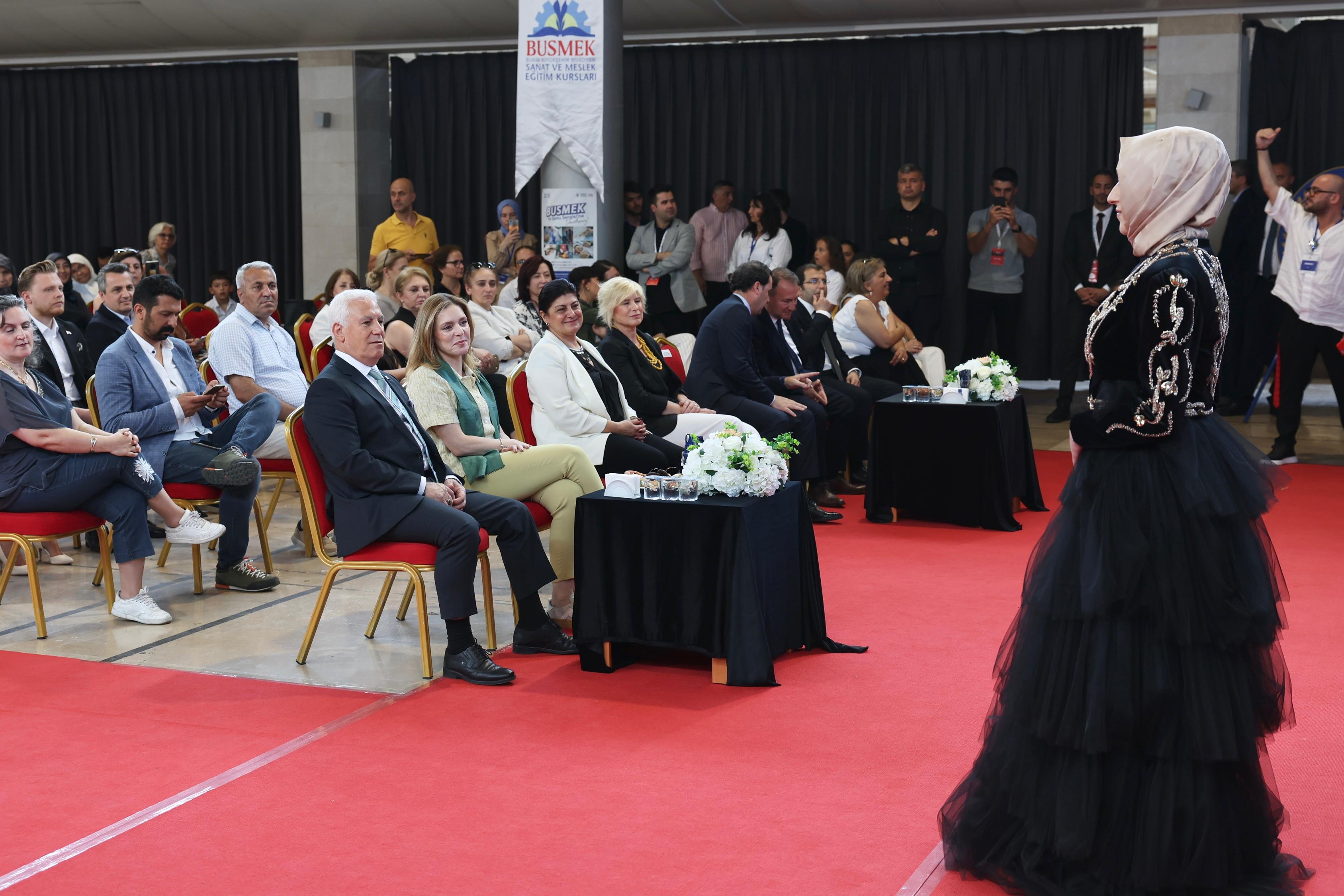 BURSA - Bursa Büyükşehir Belediyesi Sanat ve Meslek Eğitimi Kursları (BUSMEK) tarafından düzenlenen Yıl Sonu Sergisi’nde kursiyerlerin bir yıl boyunca ürettiği el işi, sanat ve meslek ürünleri Bursalıların beğenisine sunuldu.
